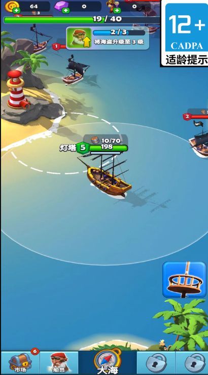3.玩家可根据喜好升级船只,从帆、甲板到炮台、仓库,强化航海性能。
