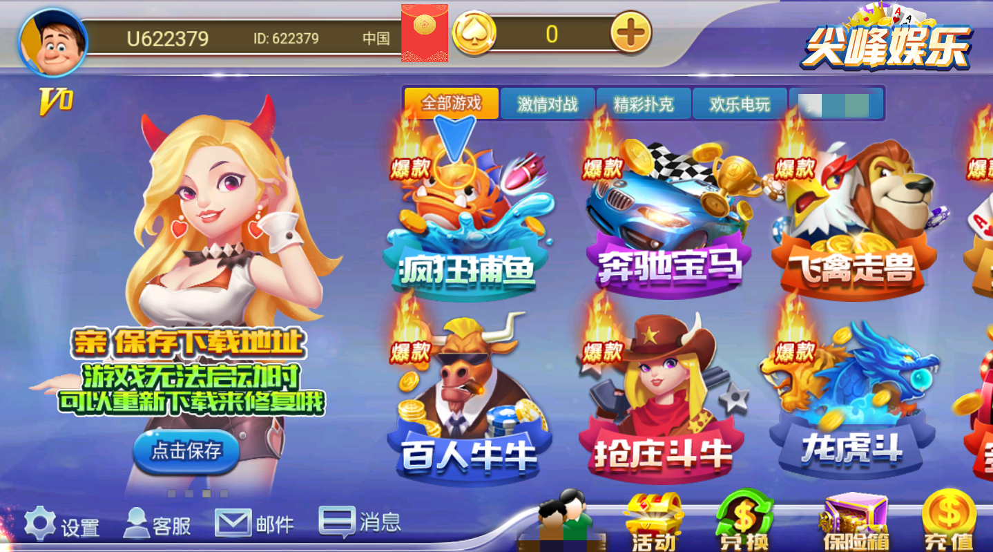 2.多种游戏玩法,包含了斗地主、牛牛、金花、捕鱼等。